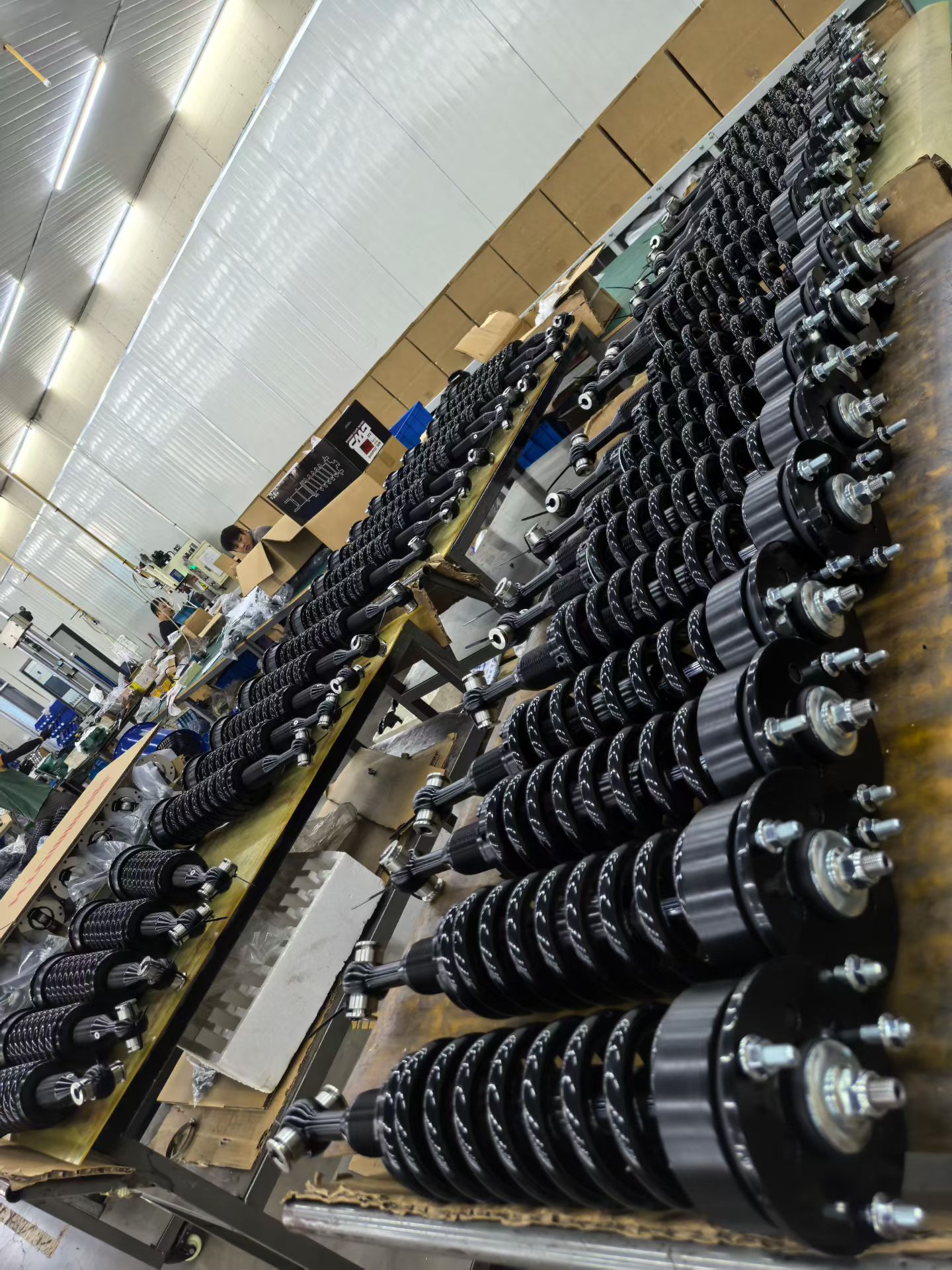 We provide custom spring rate options based on vehicle weight and application: Street Performance: - Front: 6K-10K kg/mm - Rear: 4K-8K kg/mm Track/Racing: - Front: 10K-14K kg/mm - Rear: 8K-12K kg/mm Off-Road/Heavy Duty: - Front: 8K-12K kg/mm - Rear: 6K-10K kg/mm Custom spring rates available for OEM orders (MOQ 50-100 sets). Our engineering team can calculate optimal rates based on your vehicle specifications.