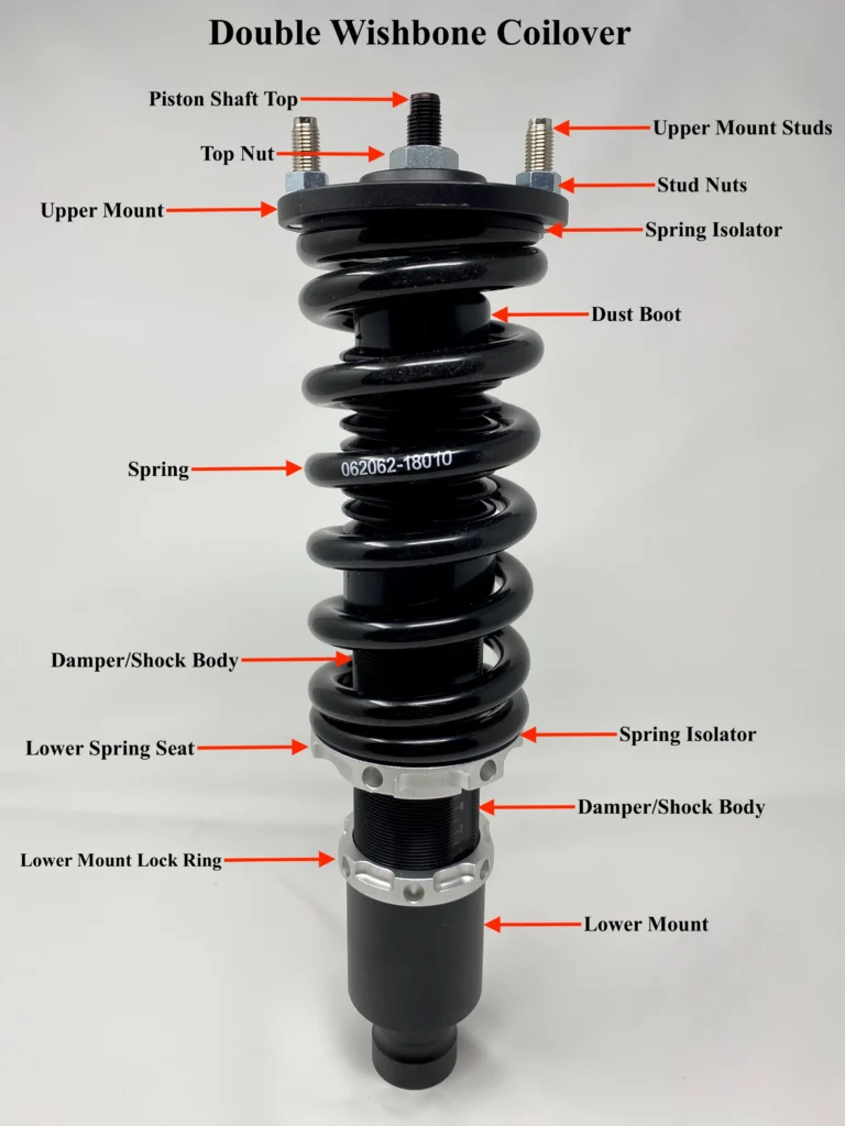 Fully adjustable coilover suspension allows precise control of vehicle height and ground clearance — ideal for tuning shops and performance vehicle manufacturers.