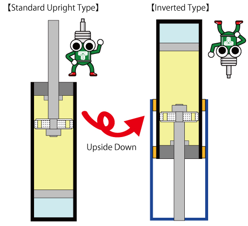 Inverted Mono-Tube Strut Structure Alt: Diagram of inverted mono-tube strut with component labels.